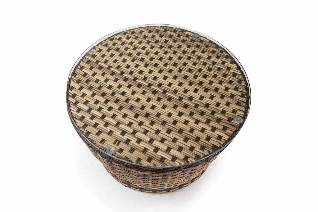 With a chic Arabica finish, this set complements any decor, seamlessly blending with both indoor and outdoor settings. The table, measuring 28 inches in diameter and 16 inches in height, pairs perfectly with the chairs, which are designed for optimal comfort at 31 inches wide, 20 inches deep, and 27 inches high.
