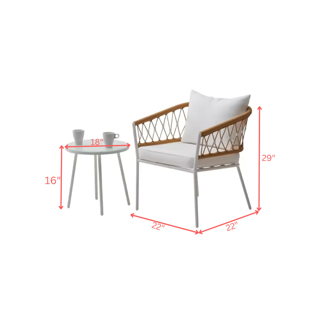 Virasat Outdoor Patio Seating Set 2 Chairs and 1 Table Set Braided & Rope (Honey/White)