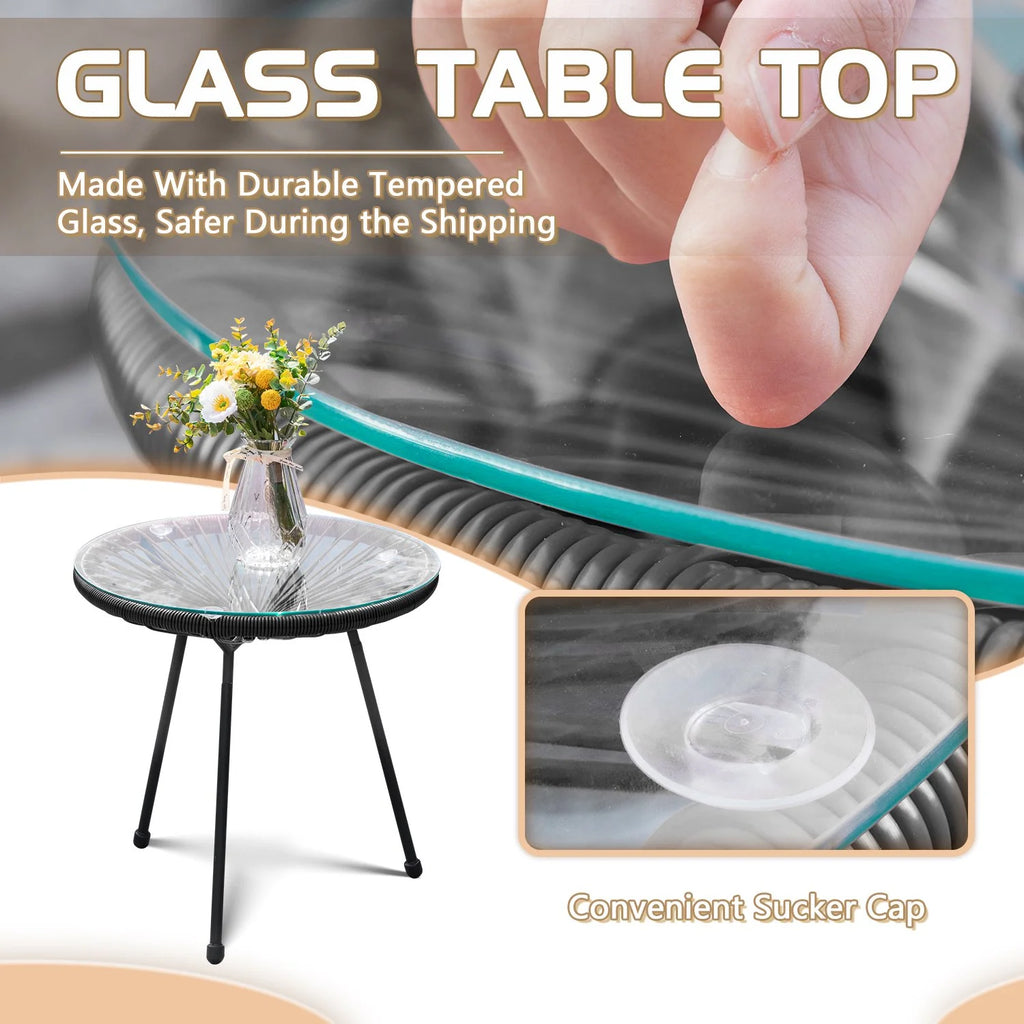Featuring a handwoven design with synthetic rattan, this set not only enhances the aesthetic of your space but also provides unmatched comfort. The table dimensions are L 19 x W 19 x H 19 inches, while the chairs measure L 33 x W 28 x H 34 inches, making it the perfect size for any setting.