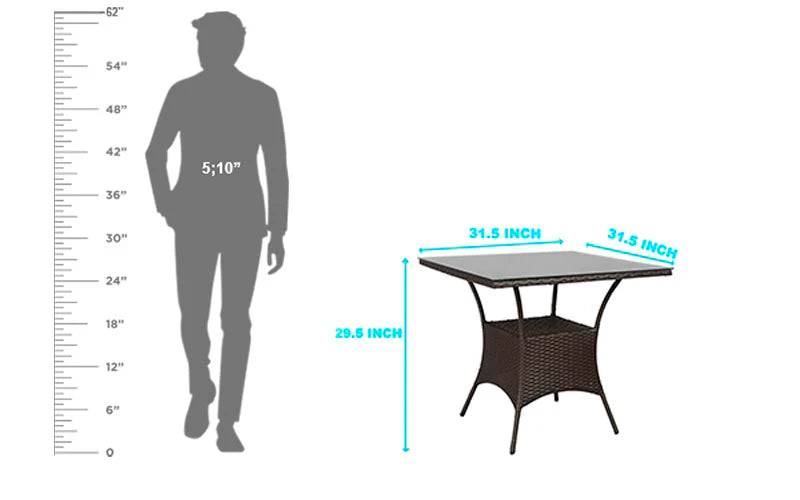 Table: L 31.5 x W 31.5 x H 29.5 Inches