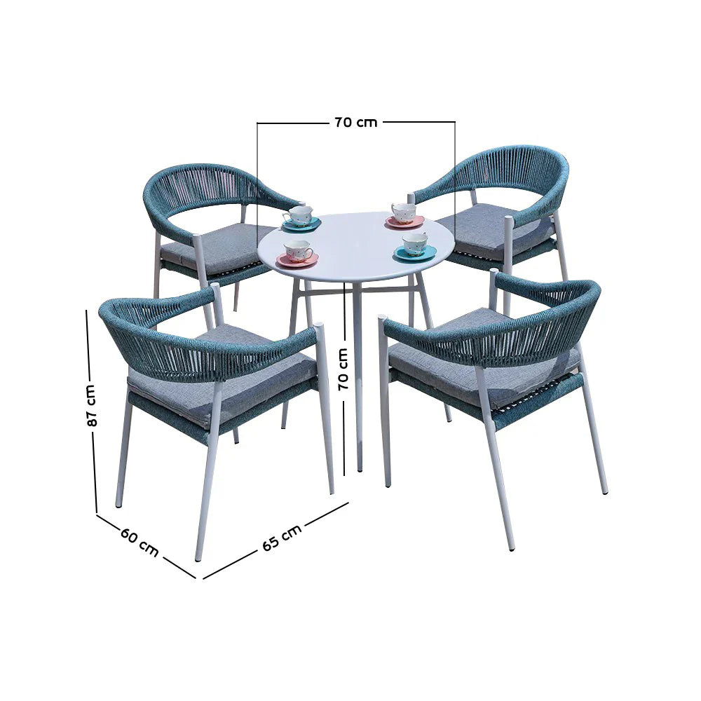 Virasat Outdoor Patio Seating Set 4 Chairs and 1 Table Set (Sky Blue) Braided & Rope